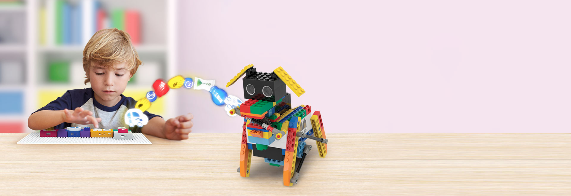 In the AlgoPlay curriculum, utilizing the coding language of Algobrix®, students first assemble a building block model. They then formulate various code sequences using tangible or screen function and parameter blocks. By activating the “play” block, the robot executes the coding sequence. When students combine function and parameter blocks, they instruct the robot with specific commands, like moving forward or activating a red light.